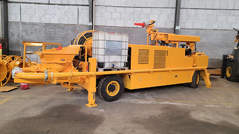 工作原理:當(dāng)液壓系統(tǒng)壓力油進(jìn)入一主油缸時,活塞桿伸出,同時通過密封回路連通管的壓力油使另一活塞桿回縮。與主油缸活塞桿相連的混凝土輸送活塞回縮時在輸送缸內(nèi)產(chǎn)生自吸作用,料斗中的混凝土在大氣壓力作用和攪拌葉片的助推作用下通過滑閥吸入口被吸入輸送缸。同時,另一主油缸在油壓的作用下,推動主油缸的活塞桿伸出并同時推動混凝土活塞壓出輸送缸中的混凝土,通過滑閥輸送口Y字管進(jìn)入混凝土輸送管。動作完成后,系統(tǒng)自動換向使壓力油進(jìn)入另一主油缸,完成另一次不同輸送缸的吸、送行程。如此反復(fù),料斗里的混凝土就被吸入和壓送出輸送缸,通過Y型管和出口連接的管道到達(dá)作業(yè)點,完成泵送作業(yè)。